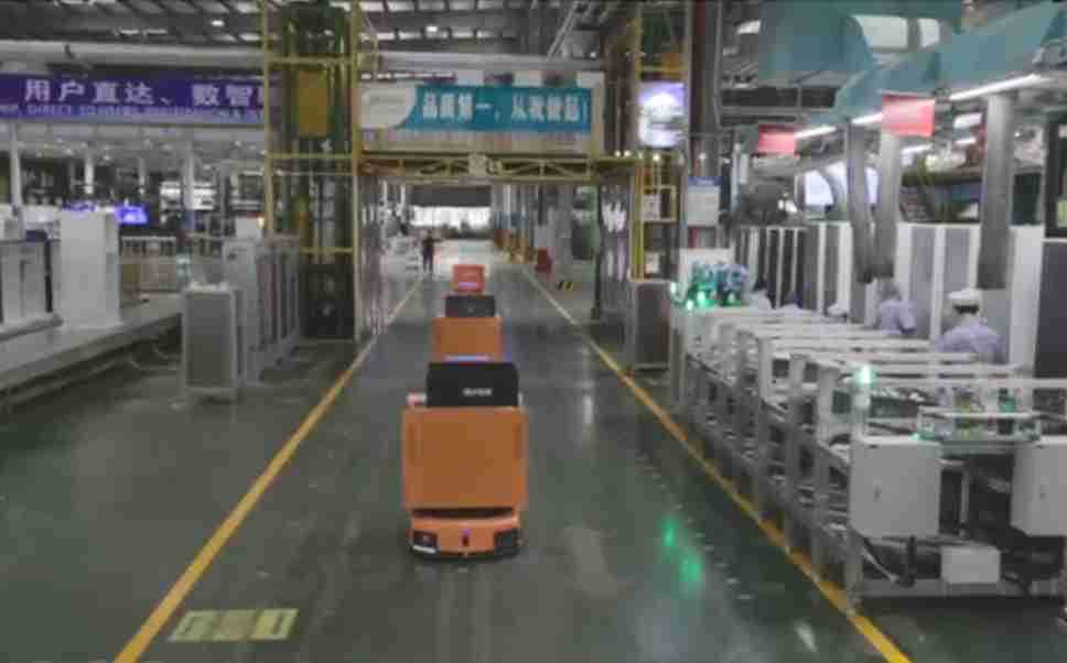 为车载冰箱物流配送打造的智能解决方案,,,包含产中物流通过潜伏举升AMR搬运至线边,,,,产后成品物流智能仓储,,,流程包含产中物流智能齐套入库,,线边安灯叫料AMR智能配送至线边,,,成品入库、、、出库,,,,通过无人堆高车机器人,,智能仓储管理替代人工作业管理,,,实现更高存储、、更高效率、、、、更具柔性化的解决方案。。。。